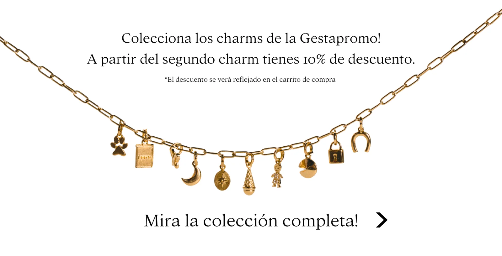 Esta colección de charms diseñados en colaboración con la Gestapromo celebra todas las facetas de ser mujer hoy: madre, amiga, profesional, soñadora, imperfecta… y siempre encantadora. Cada charm es un fragmento de vida: una emoción, un recuerdo o un lazo que nos acompaña. Son pequeños relatos en oro que se entrelazan para contar una historia. Diseñados para combinarse y coleccionarse, elevan cualquier look y se adaptan a toda ocasión, manteniendo la calidad y garantía de más de 115 años de Murguía. Porque no hay dos charms iguales, como no hay dos historias iguales.