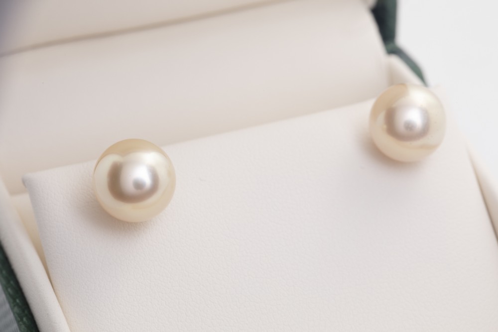 Par de aretes en oro blanco 18kt. Con perlas cultivadas de 10-10.9mm.