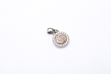 Dije en oro bicolor 18kt. Con diamantes corte brillante 0.20kt brillantes rosas 0.09kt. Con 1.1gr. de oro
