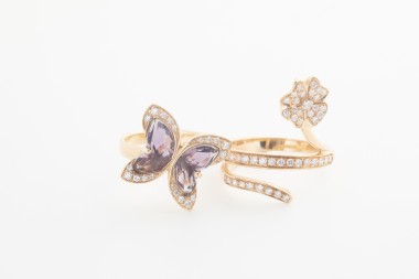 Anillo Moraglione de mariposa en oro rosado con amatistas y brillantes